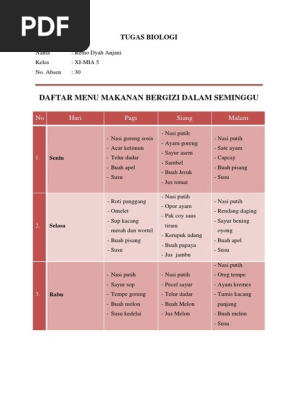 Daftar Menu Makanan Bergizi Dalam Seminggu Pdf