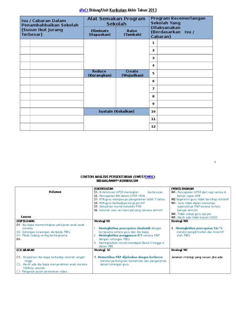 - penguasaan sifir meningkat. 2025 Jadual 2 Pelan Taktikal tahun semasa Jadual 3 Pelan Operasi Program Jadual 4 Rekod Pelaksanaan dan Penilaian Program Jadual 5 Laporan Prestasi. Contoh perancangan strategik sekolah.