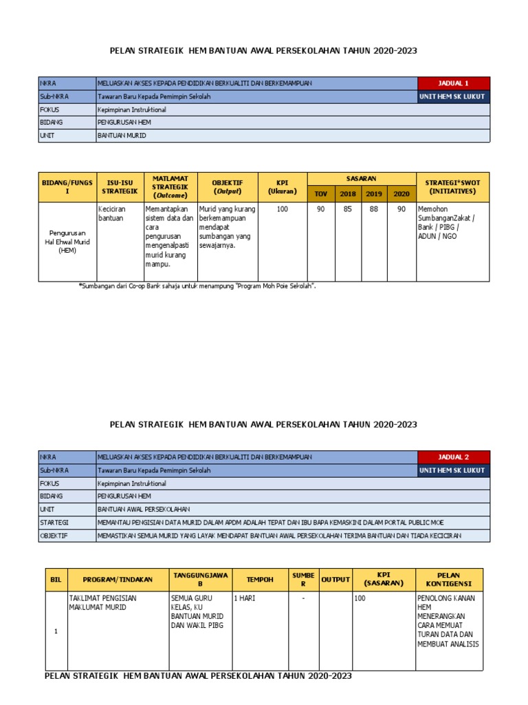 Pelan Strategik Hem Bantuan Awal Persekolahan Tahun 2020 Pdf